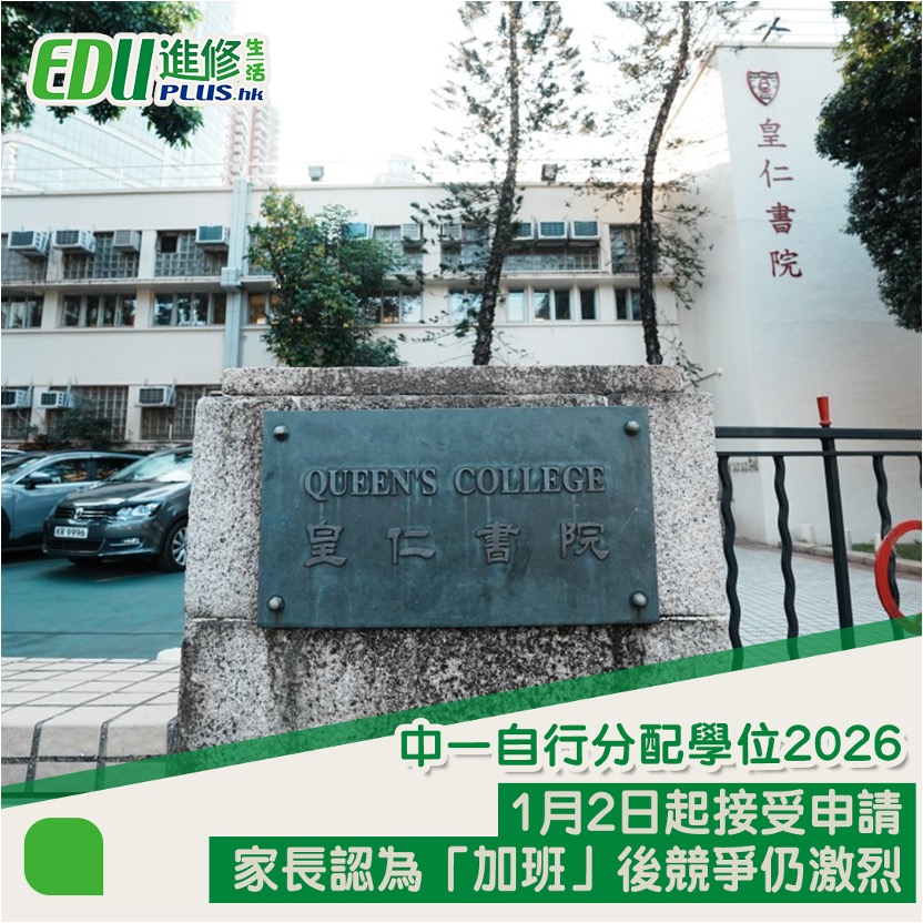 中一自行分配學位1月2日起接受申請,教育局早前批准皇仁書院於2026/27學年將中一班級由4班增至5班,有家長認為學額增加或許能提升錄取機會,但現時學生來自不同地方,競爭依然激烈。