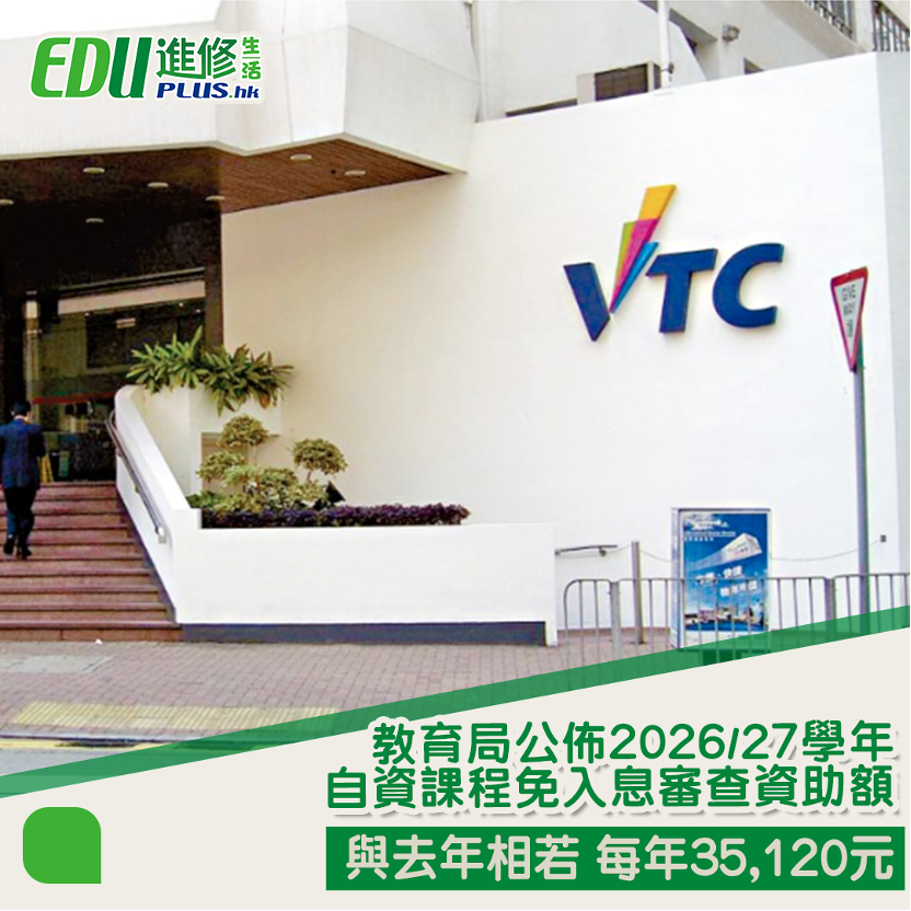 教育局公佈2026/27學年自資課程免入息審查資助額 與去年相若 每年35,120元