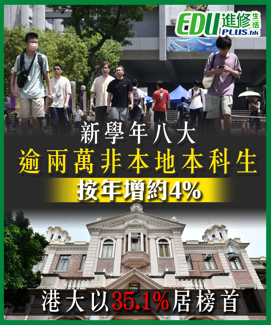 新學年八大逾兩萬非本地本科生 按年增約4% 港大以35.1%居榜首