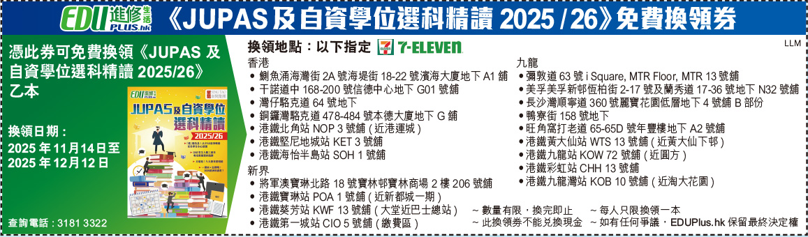 JUPAS 及自資學位選科精讀2025/26