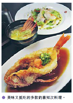 只是來到龍壽司,更不可錯過一些須作預約才能品嘗的美食,而這趟我便嘗到釣喜知次套餐。相信老饕們都知道,被稱作「海中紅寶石」的喜知次(Kinki)是日本的高級魚,在喜知次魚獲豐富的網走,部分漁民更會捨網捕方式而改為釣喜知次,據說釣來的喜知次,魚身更美觀之餘,肉質也更具彈性。在龍壽司的釣喜知次套餐,便有四道菜式,包括喜知次醬汁魚生、原條炸喜知次、喜知次釜飯及喜知次魚湯,美味可口之餘,更只賣三千五百日圓(約港幣二百四十九元),實在抵吃!
